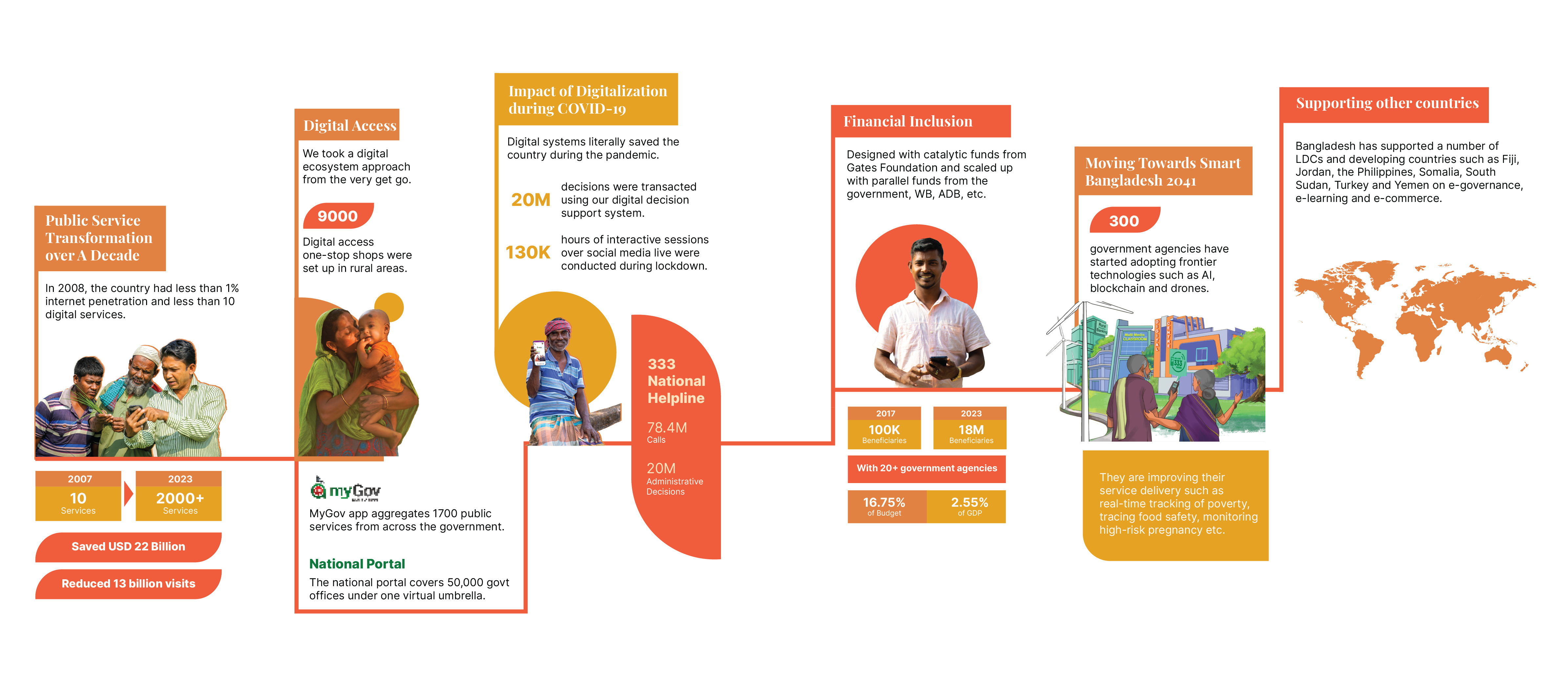 A key enabler of Bangladesh’s remarkable socio-economic progress has been a relentless, comprehensive and aggressive focus on digital transformation of the government and society as a whole. Take a look at Bangladesh’s digital transformation expedition.